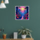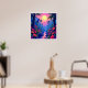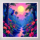 Experience the serene magic of a fantasy forest captured at a vibrant sunset. This stunning artwork is an emotionally engaging escape, featuring neon pink flowers, tall palm trees, and a river bathed in mystical light. A blue macaw completes this tropical dreamscape. While the initial concept was generated using AI technology, it was then expertly enhanced and edited by a skilled artist, ensuring its uniqueness and creative depth. This perfect blend of technology and human touch makes for a truly special piece of surreal art. Bring this exotic paradise into your space! Place your order today and embrace the joy of owning this captivating design