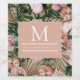 Jungle palm leaves rainforest flowers pink green wine label