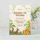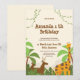 Celebrate your little one's first birthday with this adorable jungle safari-themed invitation! Featuring cute animals like a giraffe and deer among tropical greenery, it's perfect for a wild and fun party. Personalise with your party details.