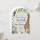 Invite your guests to a wild celebration with this adorable Jungle Safari Baby Shower invitation. Featuring beautiful watercolor illustrations of a giraffe, elephant, and toucan surrounded by lush tropical greenery. This gender-neutral design is perfect for a nature-themed party to welcome your new arrival.