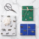 Jungle Safari Animals Pattern Blue Green Grey Wrapping Paper Sheet