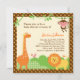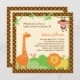 Cute and fun baby shower invitation with a jungle safari theme. Features cute animals in a green and brown colour palette. Modern and colourful designs with patterns and a border. Add your own wording. Other matching products available in this store.