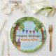 Personalise this jungle animal birthday paper plate, available in two sizes. . It's accented with a cute monkey for a child's jungle animals themed party. See other coordinating party items in this same design collection at Kids Unique on Zazzle. Created in part with graphics by Peek a Boo Designs and Alice Smith of Whimsy Primsy from www.digiwebstudio.com
