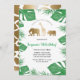 Jungle, Safari Birthday Party invitations, suitable for any age, Designed with a vibrate watercolor effect this invitation tropical style leaves and safari animals in faux gold foil. Add a special touch to your child's special day with these art birthday party invitations!