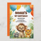 Get ready for a wild adventure with this adorable jungle safari birthday invitation! Featuring cute baby animals, tropical greenery, and playful balloons, this design is perfect for a fun and exciting jungle-themed party. Easily customise with your child’s name, age, and event details for a special celebration.