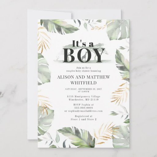 Jungle Safari Palm Leaves Baby Shower InvitationDesigned by S A Holmes