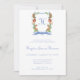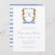 This adorable boy sip and see invitation would be perfect for introducing your sweet new baby to family and friends. It has a blue monogrammed watercolor crest surrounded by greenery and jungle animals, your bundle of joy's first initial and name, and a coordinating blue watercolor striped back. It's unique and precious.