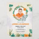 This is a fun and vibrant Jungle Safari themed birthday invitation featuring a cute boy photo. The invitation features a watercolor backdrop of lush green leaves, bright flowers, and a cute elephant. The boy is pictured holding a crayon, adding a playful touch to the design. It is a perfect choice for a boy’s birthday party. This is a customisable invitation with a space for your child’s name and age. The wording is also editable, so you can personalise it to your liking.
