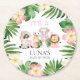 Jungle Safari It's a Girl Baby Shower Paper Coaster. Designed with watercolor cute baby jungle animals. Matching items in our store Cava Party Designs.