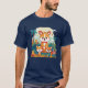 I give wanted to give this a 4 instead of a 5 because these Basic DARK T0shirts run unexpectedly SLIM or Narrow. Which is great if you do not have a potbelly, but I have a paunch. It isn't the shirt's fault that I've got a beer belly. The design and shirt itself is a quality cotton shirt. The color is more of a deep purple, but still a very pretty color. The Basic DARK T-shirts run a bit SLIMMER than the Basic Ts. The neck is a fraction narrower (or seems to be narrower) also. I'm a paunchy middle-aged woman and my neck is 12 inches (31cm) thick and the neckline fell about the same as in the photo of the man, and I had the desire to tug it a bit. So if you're a thick necked man or like loose shirts, be aware these are slimmer shirts. Once I get rid of my lockdown paunch it'll look great. The shirt washed well in cold water with no apparent bleeding. We don't have a dryer, so it hung dry. Did not shrink. Love the colors and the design. The design looks smaller on my shirt than it does on the model on-line. But still, it looks good on the shirt. The printing looks as it does on the model, just the size seems fractionally smaller. Washed garment in cold water, hung dry and design appeared unaffected.