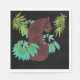 Brown tiger art vector drawing, tropical leaves , custom background colour.