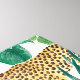 This watercolor print features animals peering thru the lush tropical bracnhes of the jungle | By Janelle Penner