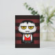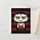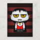 Cute cartoon baby vampire with big yellow cat eyes, dressed in a snappy red vest and black cape.