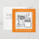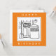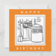 Postman and junk mail cartoon showing a trash can or dustbin next to a front door. The letterbox is for letters while the bin is for junk mail circulars. Happy Birthday Postman.