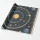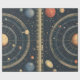 A captivating celestial diagram featuring a large, Jupiter-like planet at the centre, encircled by planets and cosmic bodies in precise concentric orbits. Set against a deep starry background with a detailed grid and numerical markings, this astronomy-inspired wrapping paper is perfect for space enthusiasts, stargazers, and lovers of planetary science. An ideal gift for celestial events, solstices, and those fascinated by the mysteries of the cosmos.