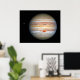 Image of Jupiter and the icy moon Europa, taken by the Hubble Space Telescope. Hubble’s sharp view is giving scientists an updated weather report on this huge planet’s turbulent atmosphere, including a new storm brewing, and a cousin of the Great Red Spot changing colour again.