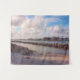 In the original photograph by ZoeSPEAK on this Wall Tapestry, we see Jupiter Inlet, on Florida's east coast. It's late on a sunny afternoon in winter. The sand and rocks marking the way from the Atlantic ocean are touched by the sunlight, and the water reflects the colours of the sky and puffy white clouds, from deep blue to golden. A boat speeds past the homes on the far shore, and the lighthouse can be seen on the horizon.