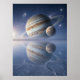 A serene cosmic scene featuring a majestic ringed planet reflected on a calm, mirror-like surface. Soft starlight and distant galaxies create a peaceful and otherworldly atmosphere, blending space exploration with minimalist elegance. This artwork is perfect for modern interiors, meditation spaces, or anyone inspired by the beauty of the universe and cosmic tranquility.