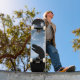 An Allosaurus dinosaur looks up at a bright blue sky as a pterosaur flies above. This design can be customised by adding you're own personal text or images!