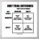 No need to have done jury duty to enjoy this poster featuring educational, statistical error summarised "Jury Trial Outcomes". Featuring jury verdict versus true state. Poster for all who know about hypothesis testing outcomes as applied to guilty or innocent verdicts in the court system!
