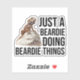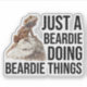 Celebrate the chill life of your favourite scaly friend with this fun “Just a Beardie Doing Beardie Things” sticker! Perfect for laptops, water bottles, journals, or anywhere you want to show off your reptile pride. Whether your bearded dragon is basking, lounging, or judging you from a rock, this design captures the vibe perfectly. A must-have for beardie owners and reptile lovers alike!