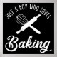 Just A Boy Who Loves Baking. This funny quote baking accessory is a great gift for a man, boyfriend, husband, dad, son or boy who loves to bake in the kitchen. Also perfect for a baker or a bakery worker. If you're a home baker, love the culinary arts, and love to prepare delicious bread, muffins, cookies, cakes or cupcakes in the oven, then this humourous design is for you.