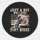 Just A Boy Who Loves Dirt Bikes American Flag Moto Classic Round Sticker