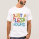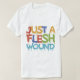 This t-shirt design features the phrase "Just a Flesh Wound" in a splattered, multi-coloured font. The playful splatter effect and vibrant colours evoke a sense of humour, referencing the classic line from Monty Python and the Holy Grail while keeping the design lighthearted and fun.