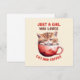 Celebrate your love for cats and coffee with our adorable 'Just a Girl Who Loves Cats and Coffee' greeting card! Featuring a cute kitten peeking out of a red coffee cup, this charming artwork is perfect for cat lovers and coffee enthusiasts alike. A delightful gift for yourself or that special someone who adores cuddly cats and cosy coffee moments.
