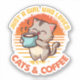 Celebrate your love for cats and coffee with this 'Just A Girl Who Loves Cats & Coffee' sticker! Featuring an adorable brown cat holding a cup of coffee, this charming artwork is perfect for feline enthusiasts and coffee lovers alike. Whether for yourself or as a thoughtful gift, this design is a cosy and delightful way to showcase your passions.