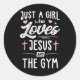 Just A Girl Who Loves Jesus And The Gym Gift Women Classic Round Sticker