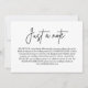 The "Just a Note Minimal Wedding Details Enclosure Card" is a simple yet thoughtful way to share important details for your big day. With its clean, minimal design, this card ensures your message is conveyed clearly—whether it’s directions, accommodations, or a personal note. Perfect for couples who appreciate understated elegance, this card complements any invitation suite while adding a personal touch. It's a refined, effortless way to keep your guests informed and feeling special.