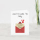 Just a note to say I love you Valentine card featuring a red envelope with a card coming out the top with the words I love you in a cute black font. Three little red hearts are coming out the envelope too. Above in the same playful font are the words Just a note to say. A simple cute card with a big message for Valentine's Day.