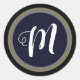 A simple and elegant monogram design on a dark-blue circle with a handwritten initial