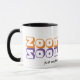 Just Another ZOOM Meeting Mug with CUSTOMIZABLE TEXT. Colourful ZOOM mug - ideal for those of us working from home and getting tired of Zoom video call meetings! Design shows the word ZOOM in various colours and in various directions. Customise the text at the bottom - JUST ANOTHER ZOOM MEETING - with your name, company name or funny quote. Express yourself and inject some humour during your next virtual meeting. Simple, minimalist design with red, green, orange, purple and black typography. Also available in plain black.