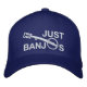"Just Banjos" is the name of a musical group made up of just banjo players. The group meets once a week for practice and performs just for the fun of it at as a community service in the Detroit Metro area. Although the cap bears the group's name, it would still make an ideal addition to the wardrobe of any banjo player.