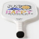 Have fun playing pickleball with this paddle that reads "Just Be Happy - Play Pickleball". Design features a pickleball "sun" and 3 lines of custom text - your name, monogram, pickleball club name, company name, location, phone number, etc. Makes a perfect gift for adults, kids, moms, dads, or anyone who loves the awesome game of pickleball.
