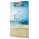 Beautiful sandy beach, blue waves and wispy sky with the words "just breathe". Paradise!