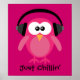 Pretty pink customizable Just Chillin' poster with a cute funky cartoon owl wearing headphones. A fun adorable original gift - ideal for teenage girls. If you need any assistance with customizing your product please contact me through my store and I will be happy to help. Please visit my Molly Sky Designs store for loads of fun, cute & retro illustrations.