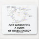 Tongue-in-cheek biochemistry attitude comes alive on any of these gifts featuring the Krebs cycle, also known as the citric acid cycle (TCAC) or the tricarboxylic acid cycle. Wry scientific truism says it all: "Just Generating A Form Of Useable Energy". Anyone who generates ATP from their cells via the Krebs cycle -- and that means you! -- will enjoy these biology / biochemistry attitude gifts!