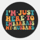 Just Here To Embarr My Husband Funny Wife Mothers Classic Round Sticker