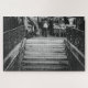 A black and white puzzle containing a photo of a dog wandering at a street bazaar in Paris near underground metro station.