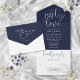 Just Love Elegant Script Navy Blue Wedding All In One Invitation
