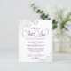 These simple wedding invitations are elegant and stylish while still being budget friendly and affordable. They feature a posh design with delicate silver-grey faux foil curls and swirls in the corners and modern magenta plum or cassis purple script lettering that reads: Nothing Fancy, Just Love. The back has room for details as well as a customisable QR code to easily direct your guests to your wedding website for more information and/or to RSVP. Beautiful way to invite your friends and family to share in your joy on your special day.