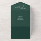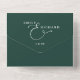 This all-in-one minimalist wedding invitation features elegant typography on an emerald green background. The invitation includes a perforated RSVP card with your wedding website QR code. Designed by Thisisnotme©
