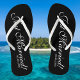Just Married beach flip flops for bride and groom / mr and mrs couple. Add your date of marriage. Personalised name elegant flipflops for newlyweds and their entourage. Make your own personalised wedge sandals for team bride, brides maid, maid of honour, flower girl, mother of the bride, mother of the groom, crew, guests etc. Cute summer slippers for nautical or beach theme marriage near the seaside. Also nice as coastal wedding party favour for guests or as chic travel present for newly weds going on honeymoon holiday destination. Create a unique set for him and her. Stylish script typography template design with family surname or custom monogram name initial letter. Create your own pair of classy flipflops for bridesmaids, groomsmen and guests. Funny souvenir slippers set for summer event in july, august etc. White, black, pink or blue strap colour. Change quantity to get a cheap discount price. Customisable background colour.