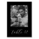These minimalist table numbers have a classic black and white photo of the happy couple in the centre with the addition of elegant white script just beneath. To edit the text and change the photo click on the personalise button.