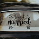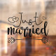 Spread the news of your wedding with this romantic white "Just Married" sticker featuring a modern script font text decorated with lovely hearts.