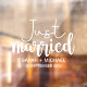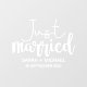 Spread the news of your wedding with this romantic white "Just Married" sticker featuring a modern white script font text decorated with lovely hearts and easily customisable with the bride and groom's names and wedding date.