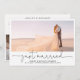 Just Married Elopement 4 Photo Reception Only Invitation - Announce your wedding after your elopement or private ceremony, and invite guests to your reception, with this trendy, modern 4 photo reception only after wedding celebration invitation card. Featuring one photo on the front placed behind a panorama opening, and 3 photos on the back, this design gives you many options. "just married" is written below in hand lettered script typography, for a fresh, casual look, along with your names, date and location. All text fields are completely customisable - colour, typeface, size, and text may be changed to suit your needs. The back of the card features all the invitation information and three vertical wedding photos. Copyright Anastasia Surridge, all rights reserved.